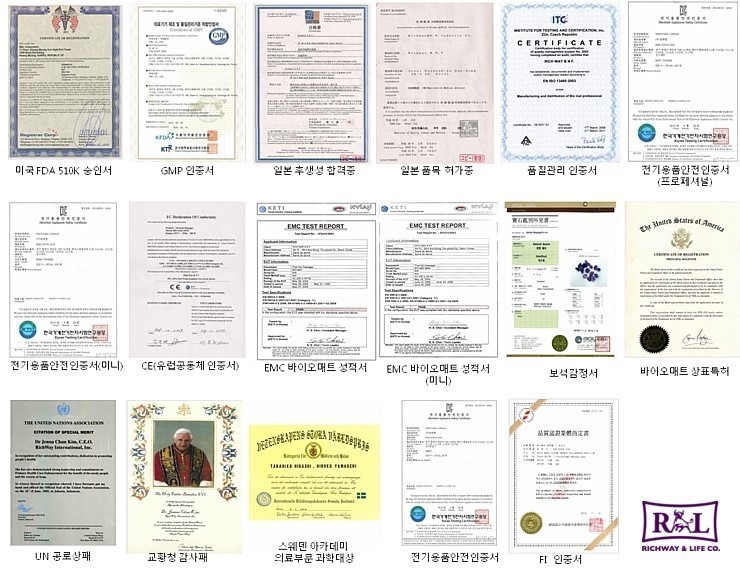 예를들어 미국FDA로 부터 1년에 1회 정도 생산 과정을 실사 받고 기준에 부합되지 않으면 승인서가 바로 취소가 될 정도로 엄격 합니다,그 외 수 많은 검증과 인증 기관으로 부터 1년 동안 매달 1회 정도 실사 과정을 거치고 있는 실정 입니다. 간혹 리치웨이 바이오매트 제품이 비싸다고 언급하는 경우가 있는데 이러한 사실을 안다면 정말 저렴한 제품이라고 인정을 할 것 입니다,