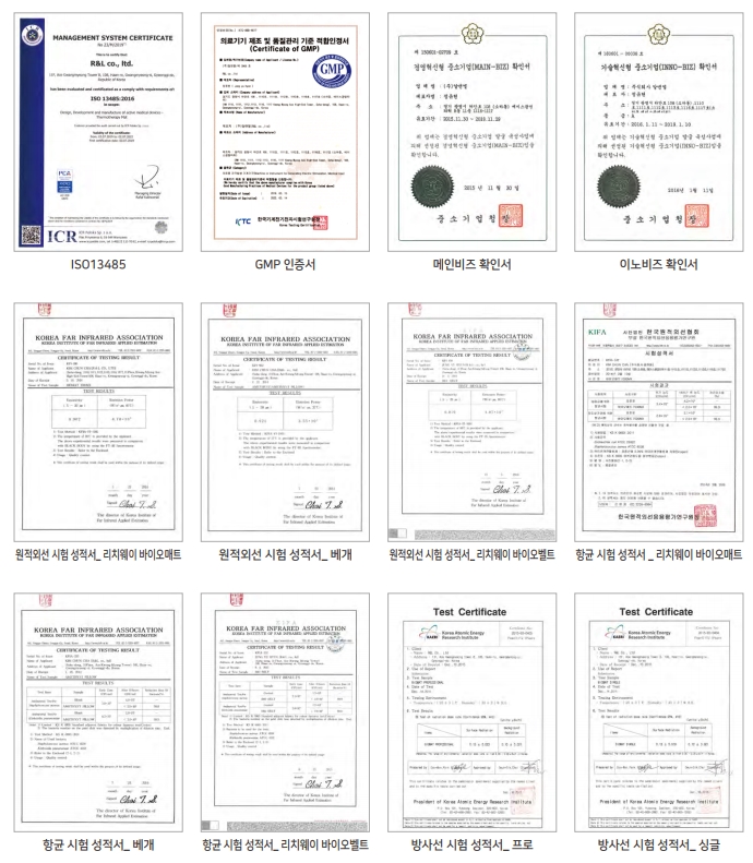 수 많은 검증과 인증 과정을 거쳐 탄생한 리치웨이 바이오매트의 기술력